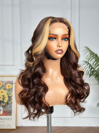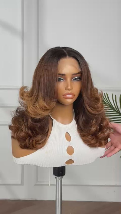 DIOR | 18" | 4X4 HD LACE | BROWN AND AUBURN | GLUELESS | READY TO WEAR | HUMAN HAIR WIG