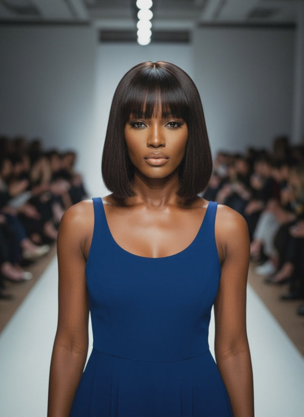 CHOLE | 4X4 HD LACE CLOSURE | 10" | BOB WITH BANG | GLUELESS | READY TO WEAR | HUMAN HAIR WIG